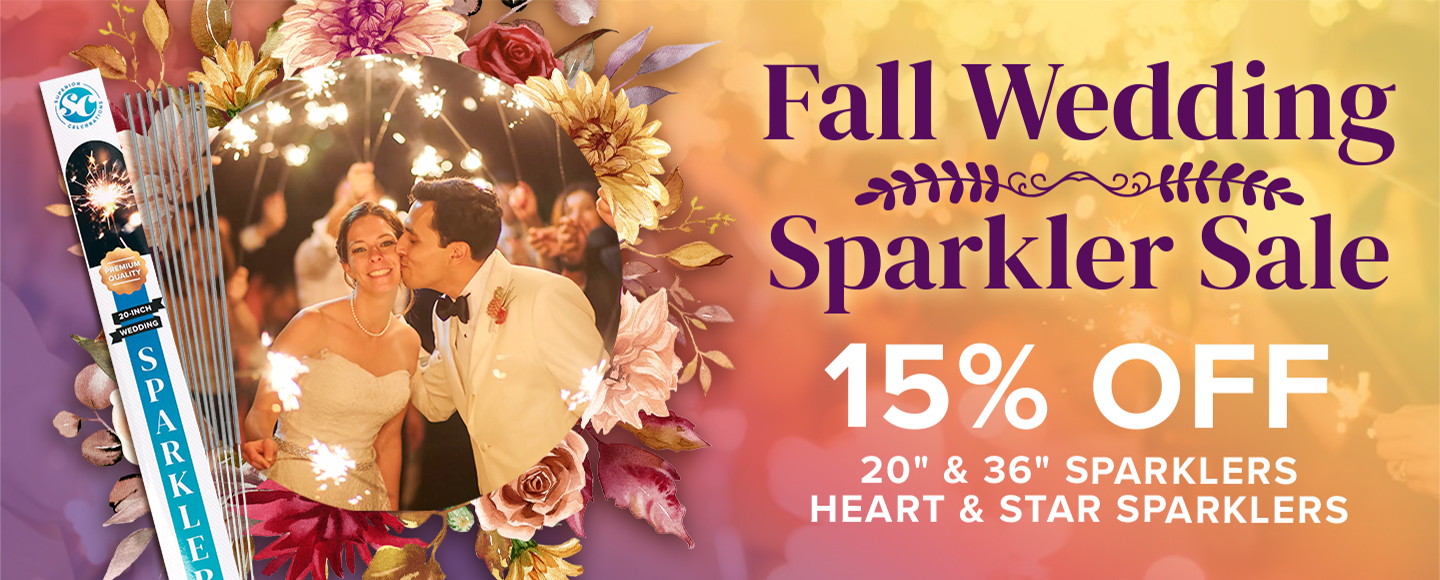 Make the magic last with our wedding favorites: 20" sparklers for big group shots, dramatic 36" sparklers for a long, glowing walkway, and playful Heart & Star sparklers that add a little “aww” to every frame.
